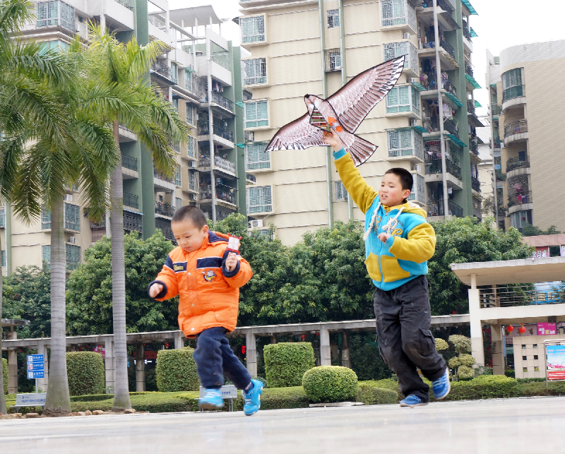 ??? 2月13日下午,眼看馬年春節就要接近尾聲,不少小朋友與家人一起來到市政廣場,迎著寒風,放飛風箏,玩溜冰,騎自行車,抓緊時間享受馬年春節的假期。 西江都市報記者 陳健新/攝
