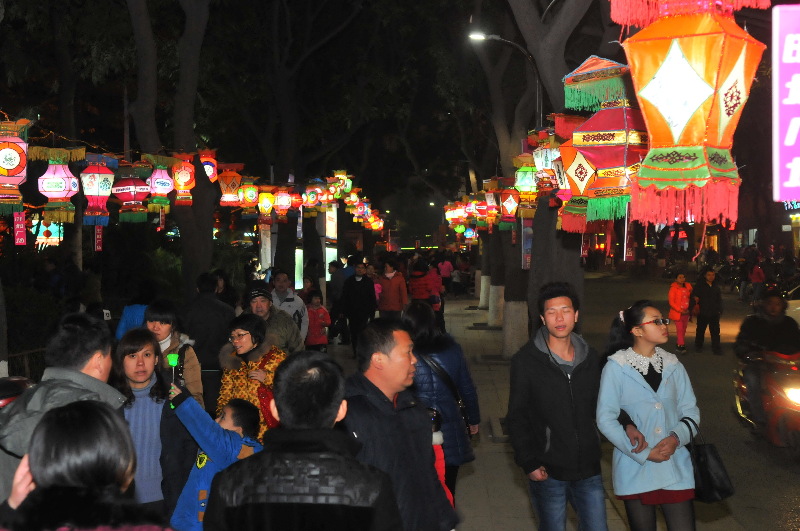 ????2月14日晚,在一中花圃,人們正在觀賞花燈。