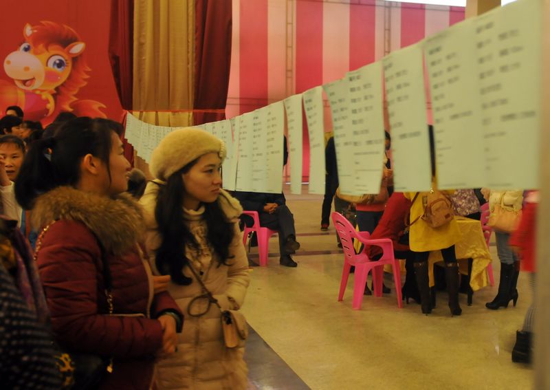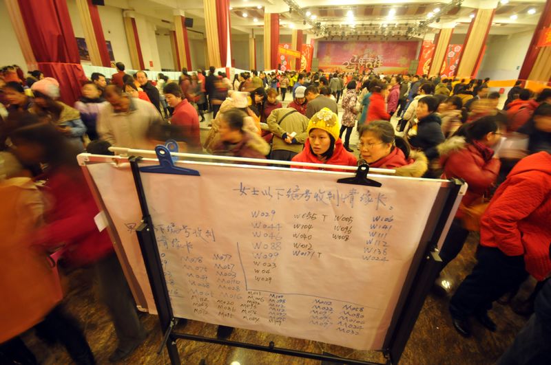 ????今年60多歲的肖阿姨戴著眼鏡,將場上合適的資料都看了個遍,還抄錄了六七個心儀的單身男性資料供女兒挑選。“女兒今年已30歲,但自25歲一次短暫的異地戀后就未有合意的對象。”肖阿姨說,眼看女兒年紀(jì)越來越大,家里人也越來越著急,“我們催得多了,女兒就說,‘要不隨便找個吧’。可是婚姻大事怎么能將就,我們也就參與進來幫她找。我今天來這里是瞞著她的,有合適的再跟她說。”