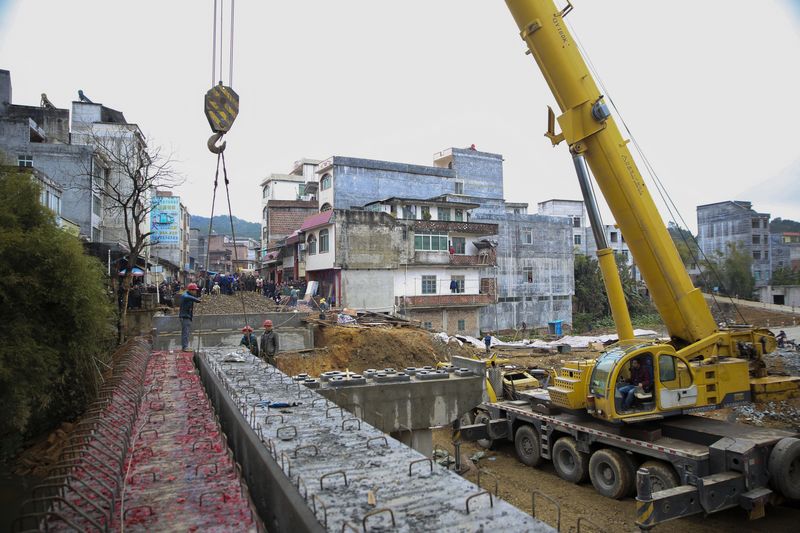 ??? 2月17日,位于省道323線的蒼梧嶺腳中橋重建施工開始進(jìn)行梁板吊裝。據(jù)了解,嶺腳中橋?yàn)轭A(yù)應(yīng)力空心板梁橋,主橋長(zhǎng)52米,橋?qū)?米。去年10月施工單位開始進(jìn)場(chǎng)施工,計(jì)劃于今年4月完工。