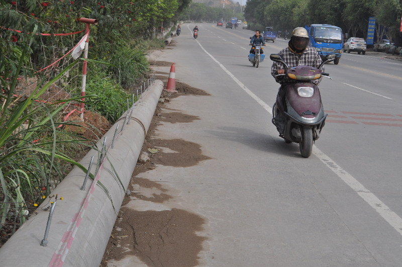 ????為何裸露鋼筋的電線桿會被放置路邊?梧州市供電局設(shè)備部主任黃志鵠告訴記者,按照有關(guān)計劃,需要在蓮花山附近安置一座變電站,因此供電部門需要在富民路施工安排輸送線路,“原本計劃在春節(jié)前完成施工,但由于春節(jié)前梧州學(xué)院有重要活動不能停電,因此工程被延誤,施工人員才將電線桿放置在了富民路邊。”