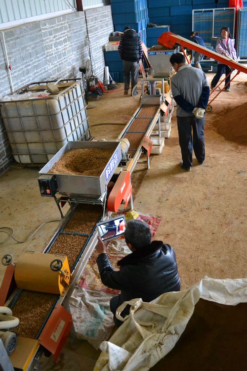 3月5日,在夏郢鎮思安村的“育秧工廠”內,水稻育秧機不斷生產出經覆土和播種的秧盤。