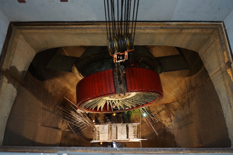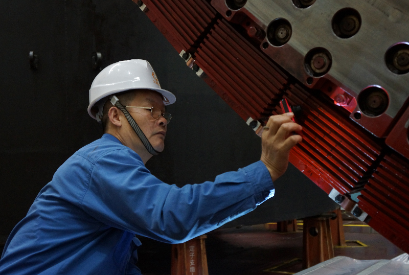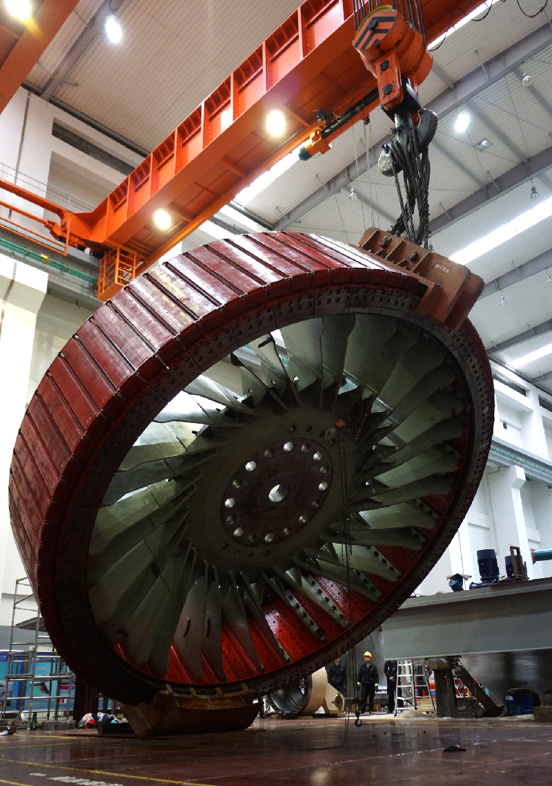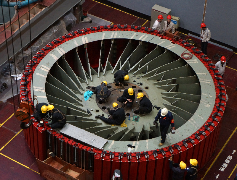 檢修人員在巨大的轉(zhuǎn)子上開展檢查維修。