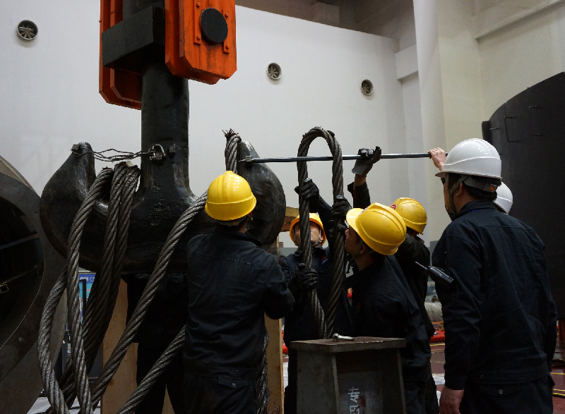 ????為保證本次轉(zhuǎn)子順利“翻身”,廣西長洲水電開發(fā)有限責(zé)任公司對此進(jìn)行了充分的準(zhǔn)備。施工過程中嚴(yán)格審核轉(zhuǎn)子吊裝方案,安排專人在現(xiàn)場協(xié)調(diào)。對轉(zhuǎn)子“翻身”工具準(zhǔn)備、吊具安裝、鋼絲繩穿掛、起吊指揮、“翻身”角度監(jiān)控等全過程進(jìn)行跟蹤。整個翻身過程,該公司領(lǐng)導(dǎo)親臨一線指揮,各級人員布置到位、操作過程井然有序,測量工作及時準(zhǔn)確,確保了本次轉(zhuǎn)子吊裝過程順利進(jìn)行。
