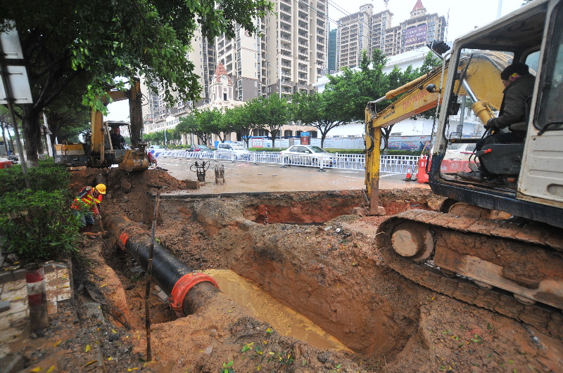 ????據(jù)梧州自來水工程有限公司有關(guān)負(fù)責(zé)人表示,計劃移改的給水管道長約50米,該工程爭取在本月底完成。 李鴻榮/攝