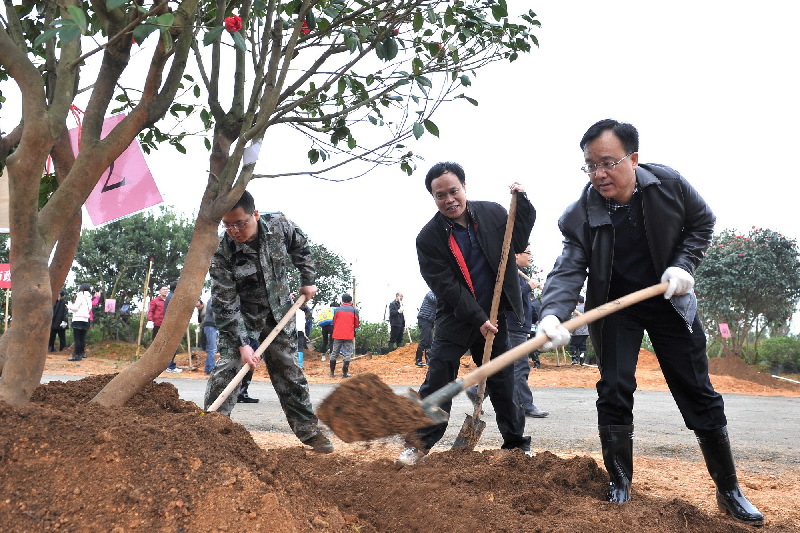 ????梧州日報訊 (記者 董宏偉 通訊員 黎偉昌) 3月12日是我國第三十六個植樹節,市黨政軍領導到萬秀茶花生態園,與廣大干部群眾一道開展義務植樹活動,為城市添新綠,鞏固“國家森林城市”和“國家園林城市”成果。