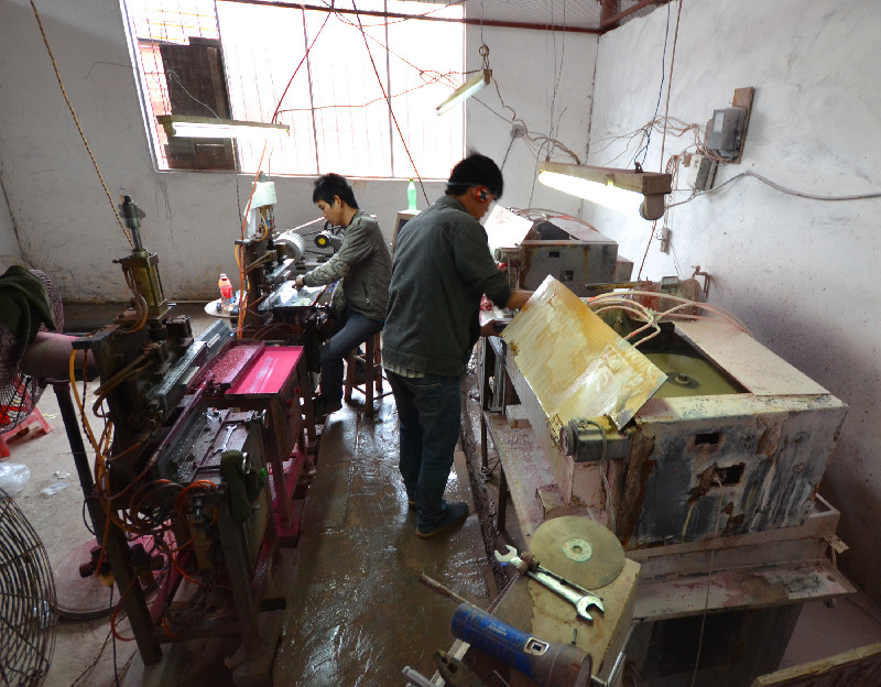 ????3月12日下午,在位于原梧州市電筒廠的寶石加工集中區里,寶石加工戶正在進行寶石加工作業。西江都市報記者 趙洋/攝