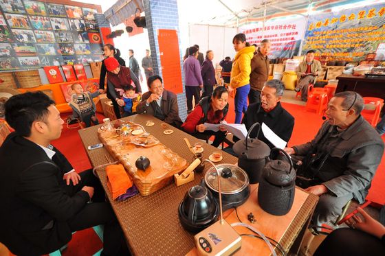 龍圩區舉辦首屆六堡茶茶文化節 楊珊 3月16日,兩位老茶農在六堡茶茶文化節上,即興演唱采茶山歌。西江都市報記者 何鎏/攝