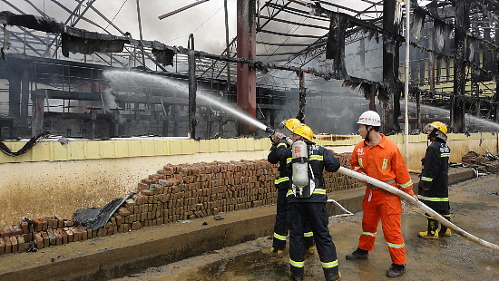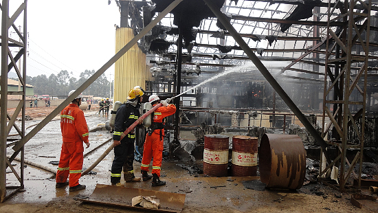 ??? 今日13時20分,梧州市藤縣富吉大橋橋頭梧州市金茂鈦白粉廠發生火災,起火廠房內堆放有煤油、鹽酸、硫酸等易燃化學物品。經過消防官兵奮力撲救,火勢于14時20分得到有效控制,明火已經撲滅,目前正在清理余火,火災暫未發現人員傷亡,火災原因和財產損失正在進一步調查統計中。