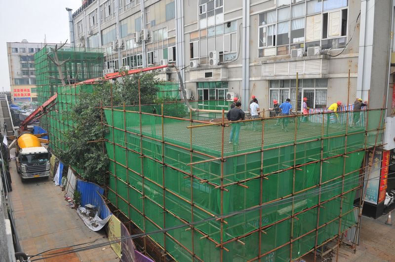 ????3月17日,鴛江麗港新建店鋪澆筑樓面。