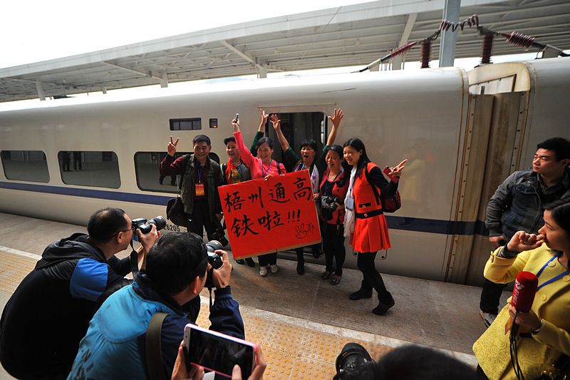 ????“南寧的妹子,等我”“老友粉,哥來也”“但愿人長久,千里共高鐵”……現場,熱情的梧州市民舉著手寫橫幅,興奮地揮舞著。“梧州盼高鐵盼了那么多年,如今終于圓夢了!”市民劉女士激動地對記者表示。