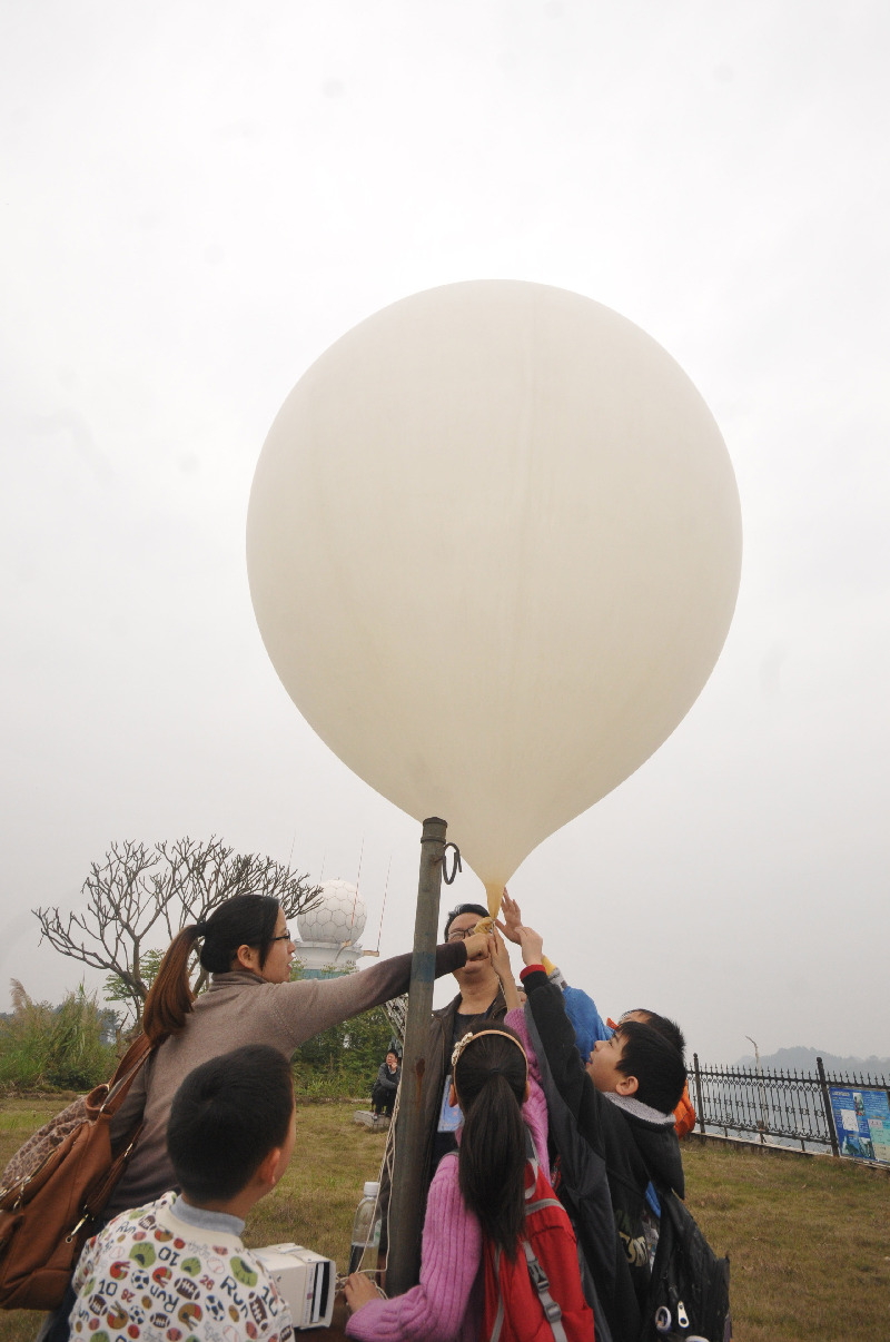 ????當(dāng)天,在氣象臺觀測站內(nèi),多種氣象探測設(shè)齊亮相。其中最吸引觀眾眼球的莫過于人工增雨火箭設(shè)備及探測不同高度的濕度、溫度及氣壓的探空氣球。梧州市氣象局通過開放地面、高空觀測站和科普館,向市民朋友講解氣象科普知識和防災(zāi)減災(zāi)常識,播放今年世界氣象日主題宣傳片,展出氣象科普知識展板等形式多角度向市民宣傳氣象知識。