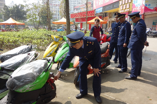 ????西江都市報訊(記者 龍?zhí)靷?通訊員 陸宏敏) 去年7月,梧州市工商局曾下發(fā)通知,禁止核準(zhǔn)“燃油助力車”和“汽油機助力自行車”等經(jīng)營范圍,并責(zé)令經(jīng)營者盡快辦理變更相關(guān)手續(xù)。經(jīng)過半年有余的過渡期,梧州市工商部門開始采取措施,禁止任何企業(yè)、銷售商家違規(guī)銷售上述車輛。3月25日,梧州市工商局聯(lián)合交警等部門,對市內(nèi)銷售違規(guī)燃油助力車的商家進行查處。