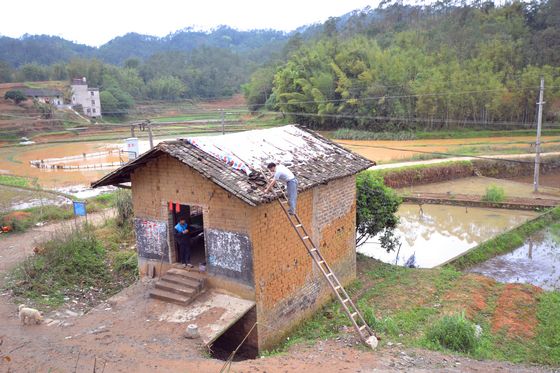 30日下午,南渡鎮(zhèn)古太村的村民正在修補(bǔ)屋頂。本報(bào)記者 趙洋/攝