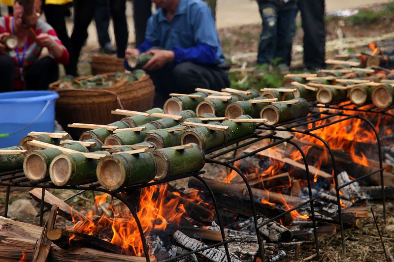 用糯米和臘肉做成的竹筒飯是“三月三”的特色食品。