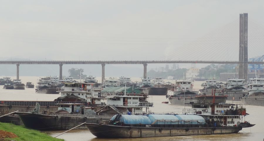 4月2日,在云龍大橋附近江面,約有200艘上行船舶在等候長洲水利樞紐船閘通行調(diào)度。