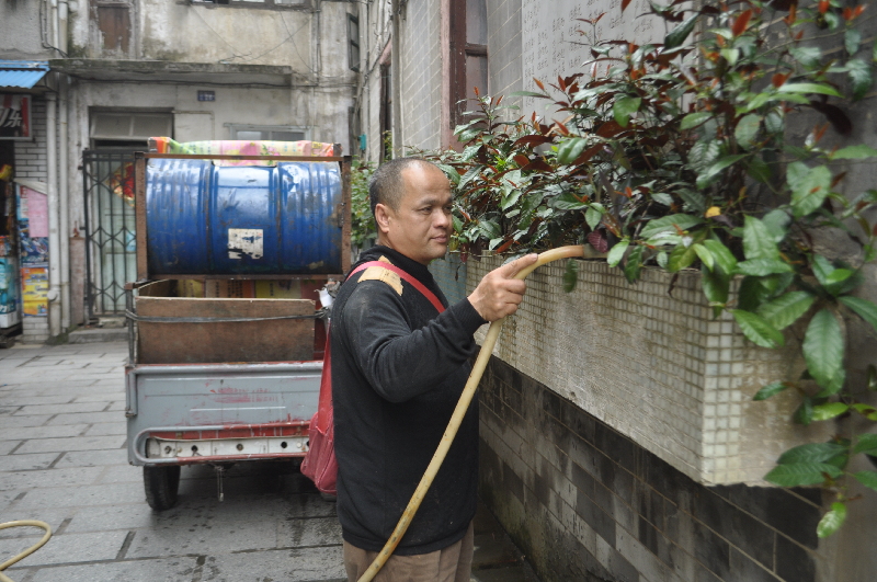 ????最開始接手為植物澆水的工作時,令黃石祥印象最深的是沒有灑水車,每次澆水都必須拿著水桶和水瓢,一桶一桶將水提到花圃處,再用水瓢將水一瓢瓢澆下。“那時候將維新里與和平路兩條巷子的綠化植物澆完水,時間長的要將近一天,而且每次澆完水都累得氣喘吁吁。”黃石祥說。