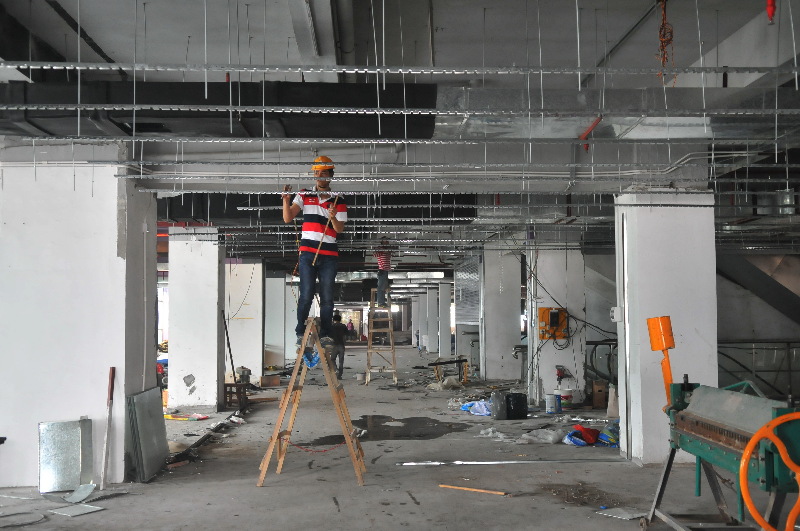 ????據了解,文華購物中心升級改造(二期)已進入設施安裝階段,施工單位增加人手,加快中心三、四樓的水電線槽、通風管道、消防等設施安裝,并間隔劃分經營店鋪。 李鴻榮 攝