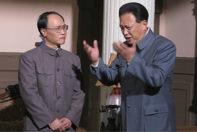 廖崇儒與唐國強(右)在電視劇《五星紅旗迎風飄揚》