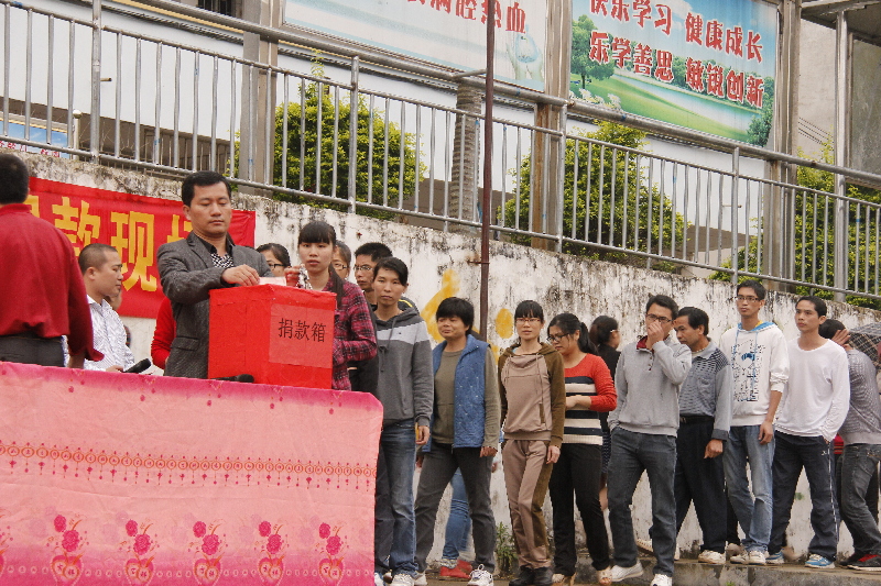 ????在4月23日下午募捐現(xiàn)場(chǎng),一幕幕感動(dòng)場(chǎng)面不斷出現(xiàn):當(dāng)天雖然下起了雨,但所有師生都冒雨前來(lái)捐贈(zèng)。曾經(jīng)調(diào)皮搗蛋但多次受到李彩潔幫助的初二學(xué)生吳富印,將自己攢下來(lái)的300元零用錢投進(jìn)了捐款箱,曾經(jīng)在和平一中教書的唐海鴻也來(lái)到募捐現(xiàn)場(chǎng)捐了1000元,不少家庭貧困的農(nóng)村孩子也在盡力表達(dá)自己的心意……據(jù)統(tǒng)計(jì),在23日的募捐現(xiàn)場(chǎng),共籌得資金21807.9元。