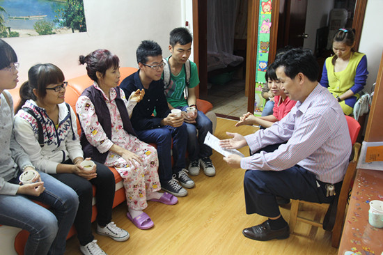 近日,梧州學院四名助人的學生與老師去探望事故中受傷的陳阿姨。 黃振球/攝