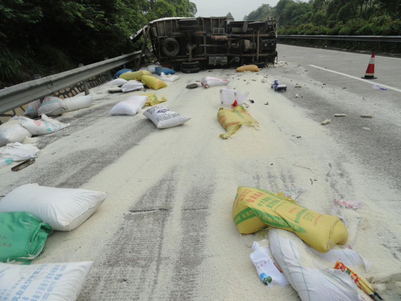 ????29日早上6點(diǎn)30分,湖南省雙牌縣理家坪鄉(xiāng)盤先生駕駛粵U04483號(hào)中型貨車,在岑梧高速公路從梧州往南寧方向行駛。當(dāng)行駛至岑溪服務(wù)區(qū)附近的上坡路段時(shí),該車從慢車道改道,超越前面正常行駛的一輛輕型貨車,由于操作不當(dāng),超車時(shí)碰剮到車牌號(hào)為桂D95885的輕型貨車的尾部,導(dǎo)致該輕型貨車翻車。輕型貨車運(yùn)載的3000多公斤大米及米粉散落在事故現(xiàn)場(chǎng)路面,為該路段留下交通安全隱患。