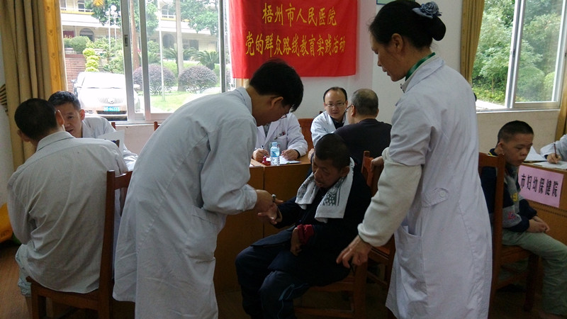 ????昨日上午,來自梧州市人民醫院和梧州市婦幼保健院的專家以及萬秀區殘聯的工作人員早早來到梧州市社會福利院,對院內的數十位殘疾人進行殘疾等級鑒定。