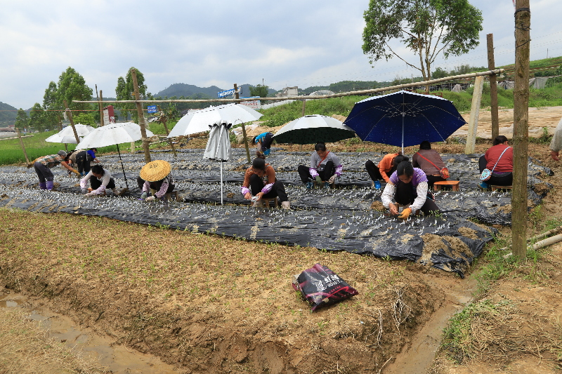 5月10日,農民在藤縣金雞鎮旺國育苗基地培育嫁接砂糖橘果苗。