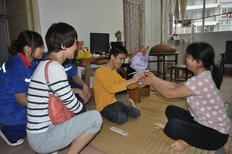 當天,梧州日報社團委、中石化梧州石油分公司團委、大塘街道辦事處團工委和豐業社區的志愿者來到梁琪位于豐業花園的家中,協助他圓了在母親節送禮物給媽媽的夢想。