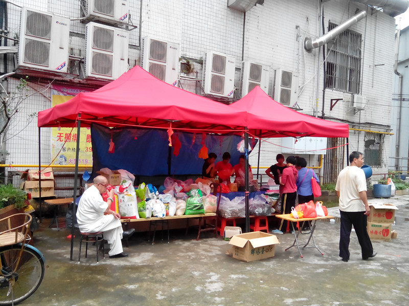 當天上午9點,記者來到怡景小區,該小區有前、后兩個門,在通往兩個門口的樓道上都有值班人員值守。但與前門相比,在小區后門處進入的人流量特別多。原來,在靠近小區后門處,有一個臨時搭建的檔口。檔主所售商品有水果、花生、紅棗等,吸引了許多外來的市民進入小區內光顧。