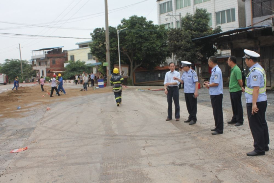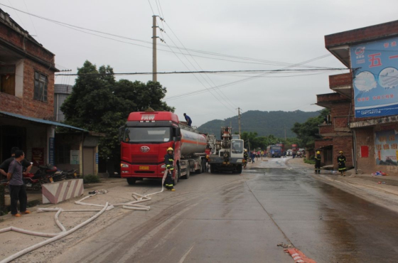公安、消防、交警、油庫工作人員等多部門接報后趕往現場處理。