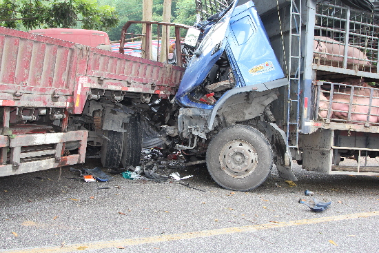 據(jù)了解,當有關(guān)部門接警趕到將貨車上受困的三人救出時,其中兩人已當場死亡。在現(xiàn)場,出事的中型貨車車頭部位遭受劇烈撞擊,已經(jīng)面目全非,車上運載的生豬,也由于巨大撞擊力而掉下車倉內(nèi)。車頭附近則血跡斑斑,地上還有兩盒葡萄糖口服液。拖頭半掛車的駕駛員徐某某十分后悔地說:“我的剎車制動生效時間過長,本來打算回家再修的,沒想到在半路就出事了。我十分對不起他們。”