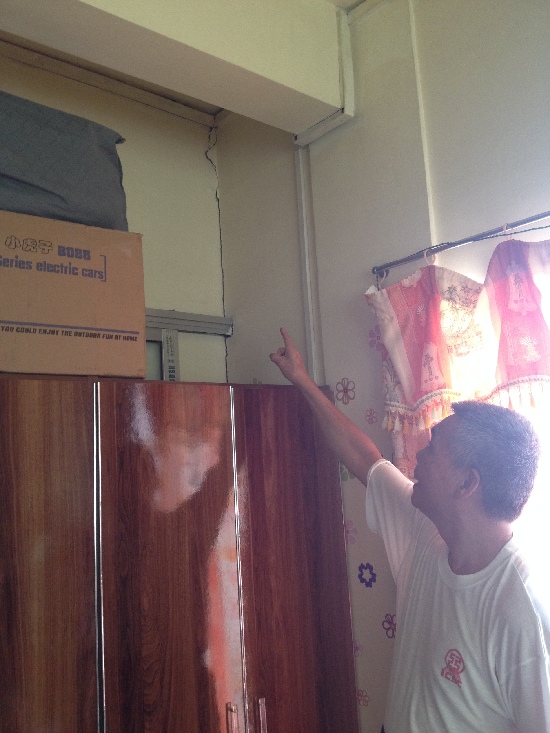 ????“大約在2010年,為房屋加建的設計單位曾派人來查看,他們當時的結論是:雖然有裂痕,但是偏移不大,不影響居住?!?/p>