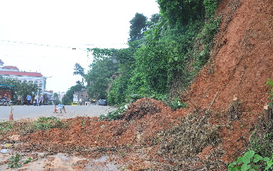 當(dāng)天上午10時(shí),記者在梧州市東出口現(xiàn)場(chǎng)看到,大量從路邊山體滑下的泥石和樹木,橫向?qū)⒃摱蔚缆返穆访嫒扛采w,來(lái)往于梧州與封開的車輛都無(wú)法經(jīng)此處通行。由于山體泥土疏松,就在搶險(xiǎn)人員著手清理山泥之時(shí),仍有部分碎石不斷從山上滑落,并發(fā)出轟隆隆的響聲,滑坡情況不太穩(wěn)定。