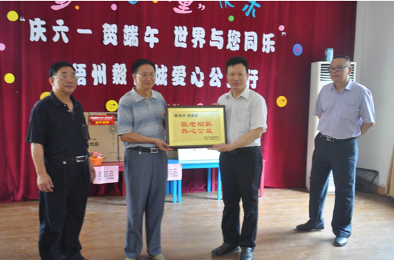 ??? 為了讓梧州市社會福利院里的老人和小孩在端午、六一這兩個節日里感受到節日的溫暖,5月29日,以梧州毅德商貿物流城開發有限公司副總經理彭永紅為代表的慰問隊伍,帶上電視機、吊扇等慰問物品及節日慰問金,來到梧州市社會福利院,為福利院里的老人和小孩送上節日的最美好祝福。梧州市民政局副局長王勇,梧州市社會福利院院長蔡文等領導出席了此次活動。