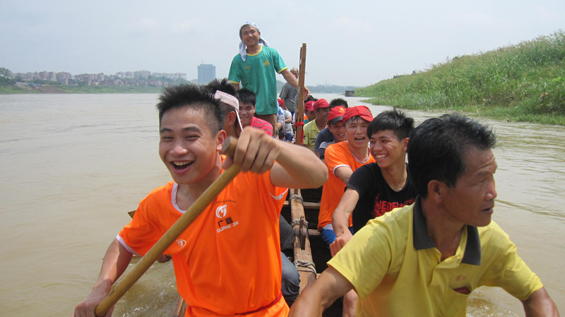每天上午8點,西江河畔上就會出現他們的身影。為了提高成績,隊員們一天的訓練時間長達8小時。“最難挨的時間是中午,太陽很大,身體的負荷也到達極限。”隊員鄧旭基說,每當這時,大家就會往臉上潑冷水,或者直接跳入江中,借此抵擋高溫。