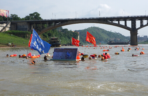 5月31日上午8時,梧州冬泳協會的泳友及來自南寧、蒼梧、藤縣、桂平、賀州、昭平、鐘山等各地冬游協會的泳友約300人,從桂江二橋下水,暢游桂江至鴛江碼頭,以冬泳人特有的方式,慶祝梧州市冬泳協會成立12周年。 (記者 陳健新 通訊員 劉紹仁 攝)