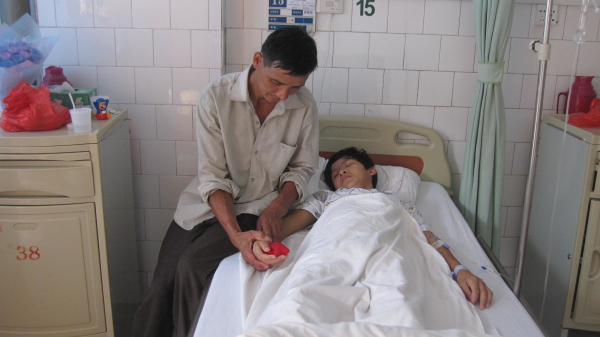 5月29日,記者在梧州市工人醫院見到了梁凱潞的父親梁石德。面對兒子突患重疾的沉痛打擊和未知的治療之路,這位木訥、憨厚的中年農民不知哭了多少次,每當回想起半個月前還生龍活虎的兒子,他的內心就揪成一團。