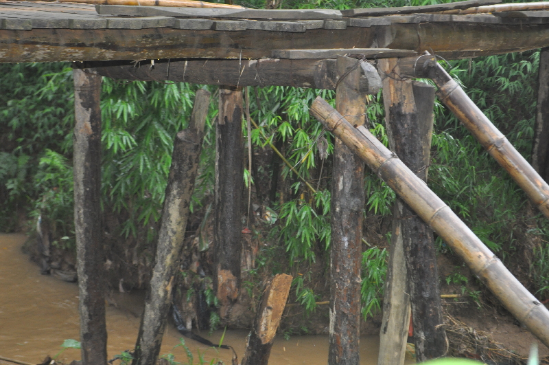 ????據(jù)中林村平山自然村50多歲的莫姓老人說,“在我小的時候,這座橋就是這樣子,經(jīng)過風(fēng)吹日曬,加上河水沖刷,這座橋破損嚴(yán)重,來來回回修了很多次。由于資金缺乏,至今還是木橋。”