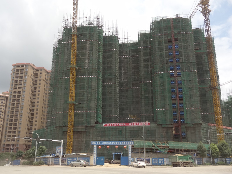 ??? 6月7日,施工單位在加快推進紅嶺安置房二期主體建設。
