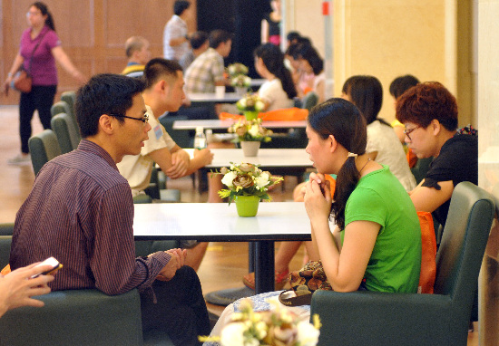 彼此有好感的青年男女進行一對一的交流。本報記者 蒙紹松/攝