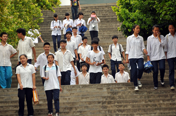 ?市十五中的考生在中考結束后走出校園。 記者 蒙紹松/攝