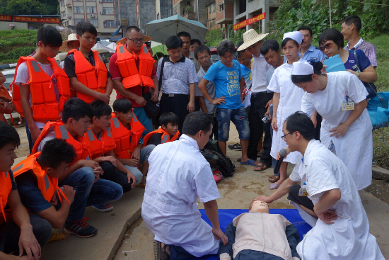 除了進行客渡船棄船及人員落水施救演練外,當天還進行了針對人員溺水救助的演練。海事、教育、體育和衛生系統的工作人員,向參加演練的師生們傳授了落水救援、心肺復蘇教學和小腿抽筋自救等實用緊急救助知識。