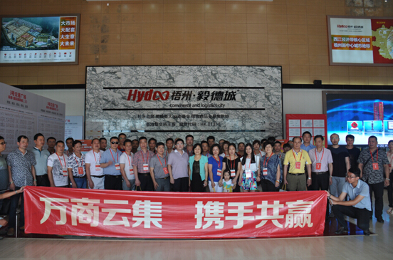 2014年6月26日下午,廣西壯族自治區(qū)工商聯(lián)副主席韋崢芳率第一批“桂商情系故鄉(xiāng)行”民營(yíng)企業(yè)家蒞臨蒞臨位于廣西梧州市紅嶺新區(qū)的270萬(wàn)規(guī)模最大、業(yè)態(tài)最全綜合商品交易集散地——梧州?毅德城開展投資考察工作。此外,廣東佛山溫州商會(huì)眾會(huì)員在會(huì)長(zhǎng)高元興 、執(zhí)行會(huì)長(zhǎng)萬(wàn)順妹、秘書長(zhǎng)鄭正平的帶領(lǐng)下,與建材家居、五金機(jī)電、服裝百貨等主力業(yè)態(tài)的品牌商戶共同前來參觀考察,梧州市招商局局長(zhǎng)賴群、梧州毅德城項(xiàng)目總經(jīng)理黃德宏熱情接待各位領(lǐng)導(dǎo)和企業(yè)家、商戶一行。