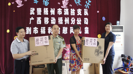 ??? 7月2日下午,梧州消防支隊與中國移動梧州分公司共同開展“消防文化月活動”系列活動之一——“愛心消防在行動”,梧州消防官兵與移動公司工作人員一起走進梧州市社會福利院慰問孤寡兒童,給孩子們贈送生活用品、水果和玩具,并為孩子們送去最誠摯的問候。