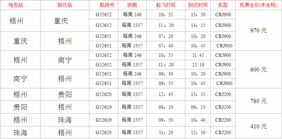 旅客接送:航班起飛前1小時在梧州機場客貨銷售中心發車,乘坐南寧航班旅客可免費接送。