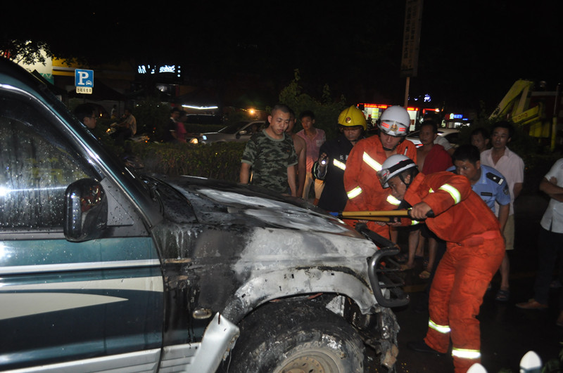 ????記者看到,出事車(chē)輛的車(chē)頭損毀嚴(yán)重,發(fā)動(dòng)機(jī)蓋已被燒成白色。據(jù)居住在京梧市場(chǎng)附近的目擊者付先生口述,晚上8點(diǎn)40左右,他正準(zhǔn)備從京梧市場(chǎng)步行至市政廣場(chǎng),突然看到停在馬路對(duì)面樹(shù)下的一輛越野車(chē)車(chē)頭冒出濃煙,車(chē)蓋處不斷有明火冒出。周?chē)吹竭@一幕的市民馬上撥打了火警電話(huà)。約5分鐘后,消防官兵趕到,及時(shí)處置了起火的小汽車(chē)。