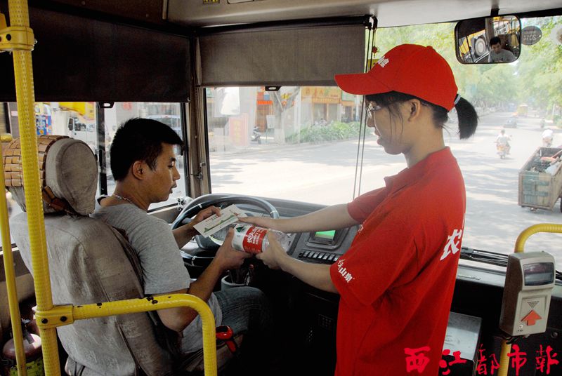 ??? 7月7日正值小暑,當天上午,愛心企業農夫山泉公司為600多名公交車司機,送上清涼的礦泉水和愛心卡片,緩解司機們的疲勞。