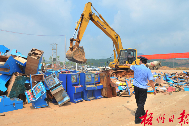 當天上午,市公安局舉行2014年集中銷毀具有賭博性質電子游戲機行動,蒼梧縣、岑溪市、蒙山縣以及三個城區公安機關也同步開展銷毀行動。此次行動共銷毀今年上半年各級公安機關依法查獲收繳的涉賭電子游戲機近1300臺。 李鴻榮 梁觀遠 攝