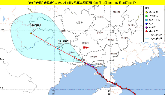 ????預(yù)計(jì)7月20日上午8時(shí),今年第九號(hào)臺(tái)風(fēng)“威馬遜”經(jīng)廣西西部后,向西北方向移動(dòng),并逐步減弱為熱帶低壓,對(duì)我市的影響也趨于結(jié)束。 市氣象臺(tái)提供